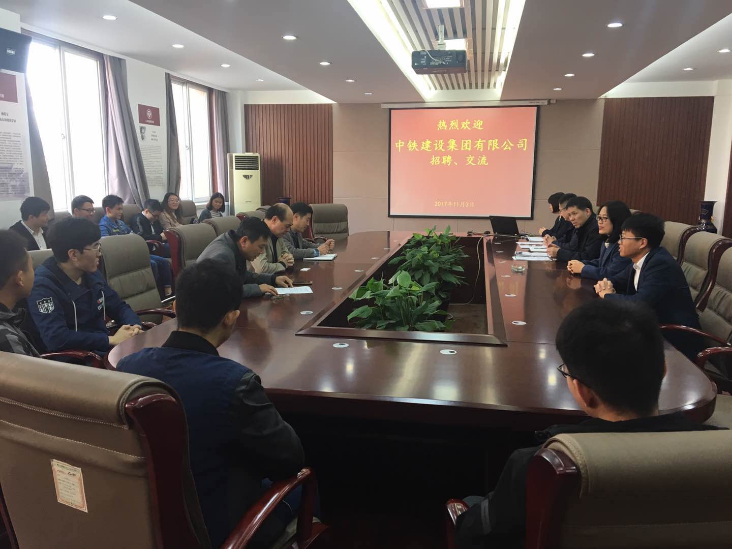 11月3日上午,中铁建设集团有限公司总经理助理兼人力资源部部长叶中锋、中铁建设集团有限公司人力资源部副部长阎辉、中铁建设集团有限公司华中分公司人力资源部副部长陈雯雯一行到土木建筑学院交流。公司党委书记李社教、党委副书记党玉敬、副经理岳建伟在学院院史馆接待了客人。交流会由公司党委副书记党玉敬主持。