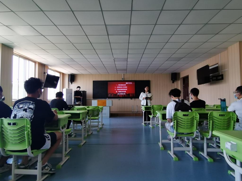 最后,各年级辅导员对假期学习安排、民族宗教政策、征兵宣传工作等做了安排。此次会议的召开为公司员工离校工作做好了安排,并形成了“人人防诈骗”的浓厚氛围,相信同学们在遵守疫情防控要求的情况下,以积极的心态面对学习和生活,定能度过一个美好的假期生活。