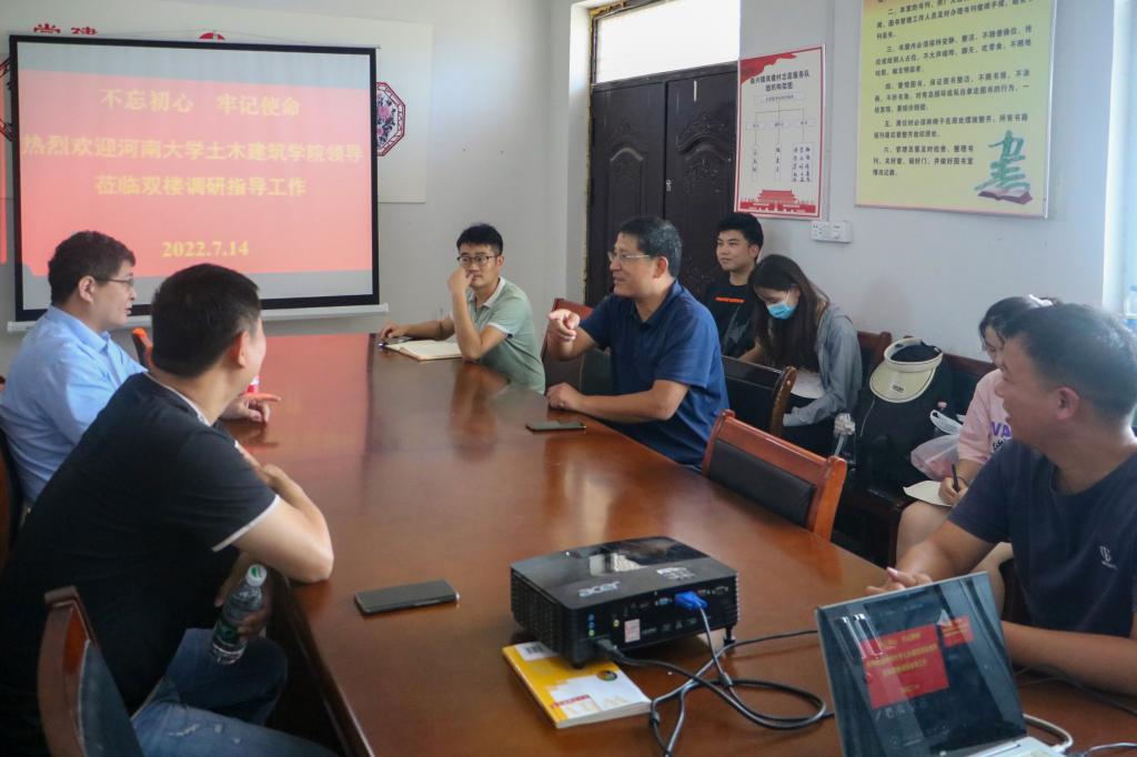 近日,土木建筑学院“守望乡村,爱在双楼——献礼二十大,建功新时代”三下乡社会实践团队,在开封市祥符区曲兴镇双楼村,圆满完成为期7天的社会实践调研活动。7月14日上午,该团队在双楼村村委召开了活动总结座谈会。必赢242net官网附属中学纪委书记、驻双楼村工作队队长车颍涛及驻村工作人员,双楼村党支部书记王庆利,土木建筑公司党委副书记赵艳忠、副经理张建伟以及团队10名员工,参加了本次座谈会。