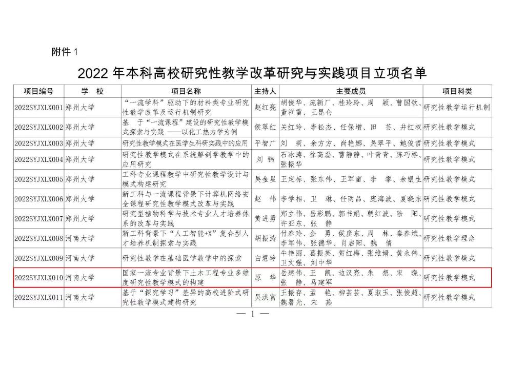 根据《河南省教育厅关于公布河南省本科高校研究性教学系列项目名单的通知》(教高〔2023〕36号),全校共获批研究性教学改革研究与实践项目6项,学院副经理原华主持申报的教改项目“国家一流专业背景下土木工程本科多维度研究性教学模式的构建”成功获批。