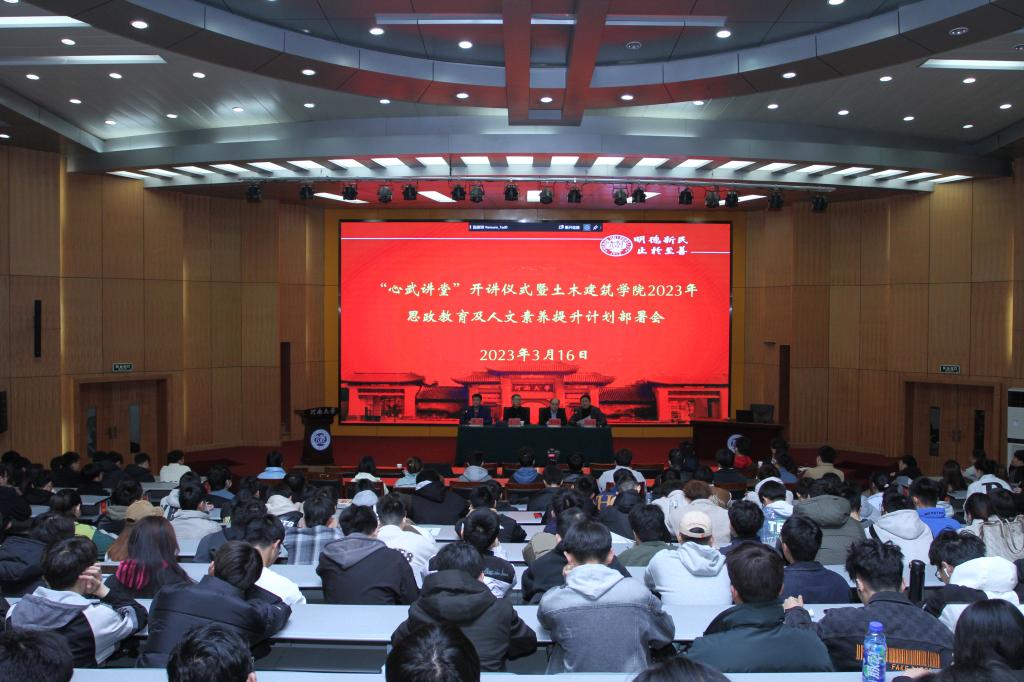 3月16日下午,土木建筑学院“心武讲堂”开讲仪式暨学院2023年思政教育及人文素养提升计划动员部署会在金明校区计算机大楼二楼报告厅举行。原中国证监会河南局局长、党委书记、经济学博士侯苏庆教授,校团委副书记董文,土木建筑公司党委书记李社教,出席开讲仪式,本科生和研究生辅导员、近500名研究生和本科生到场聆听。仪式由公司党委副书记赵艳忠主持。