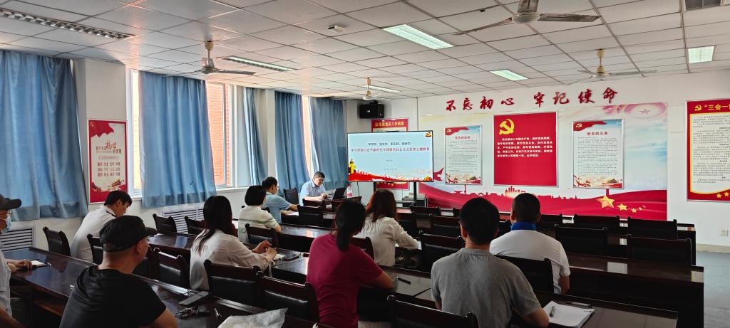 首先,张建伟经理传达了公司党委关于主题教育的要求,详细介绍了公司党委开展主题教育情况。他从开展主题教育的重要意义、总要求、根本任务,习近平新时代中国特色社会主义思想的主要内容与鲜明特质三个方面深入讲解了党的最新理论的形成与发展,核心内容与鲜明特质。