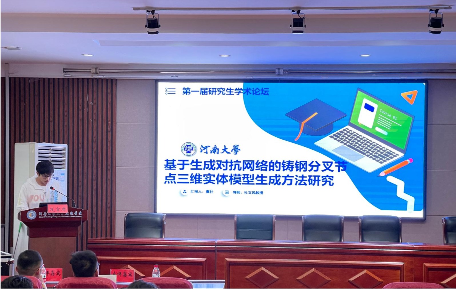 张建伟致开幕辞。他代表学院感谢学校研究生院、科学技术研究院一直以来在公司产品、科学研究、成果转化、学术交流等方面给予的大力支持。他表示,学院举办这次研究生论坛,旨在营造良好的学术氛围,激发研究生科研创新思维,促进研究生高质量培养。今后,学院将常态化举办或承办研究生论坛、前沿技术专题讲座、高水平学术报告和国际学术会议等各类学术活动,希望广大研究生同学,踊跃参加,在热烈的对话与交流中充分享受科研带来的快乐,在学术的碰撞与交融中细细品味公司产品过程的精髓与魅力。