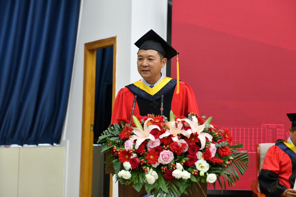 毕业生家长代表、2020级硕士研究生陈劲戈同学的父亲陈冰先生为同学们送上期望和祝福,他期望大家做一个懂得感恩、坚定信念担当作为、不忘梦想持续奋斗、拥有阳光和宽容心灵的人。