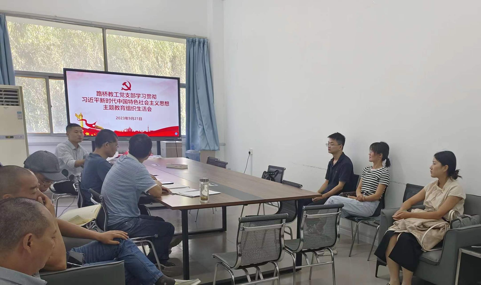 9月21日下午,路桥教工党支部在结构实验室201C会议室召开了学习贯彻习近平新时代中国特色社会主义思想主题教育专题组织生活会。会议牢牢把握“学思想、强党性、重实践、建新功”总要求,认真摆查存在的问题,制定具体整改措施,为党建工作引领事业发展指明方向。