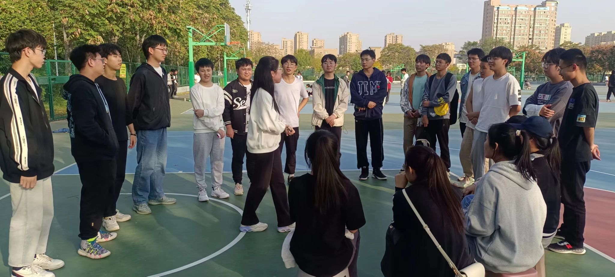 在年级跳绳比赛中,六个班级各派出6男2女参赛,队员们个个精神饱满,斗志昂扬,动作敏捷,展现了极高的热情和团队协作精神,此项比赛深受同学们的喜爱,场内外不时传来欢笑和呐喊声。最终,建筑一班获得第一名,建工班获得第二名。年级比赛后,各班举行了丰富多彩的心理健康小活动和小游戏,活动最后,负责人为获奖个人和集体发放了奖品,全体同学合影留念。