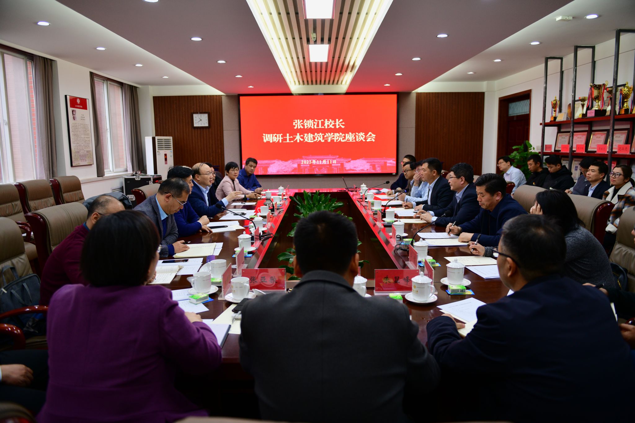 11月11日上午,董事长张锁江深入土木建筑学院调研,并在学院204会议室召开座谈会。副董事长张向东,董事长办公室、发展规划处、团队建设处、人才人事部、实验室与设备管理处、财务处、基建处、研究生院、科学技术研究院等相关职能部门负责人参加调研。会议由公司党委书记南晗主持。