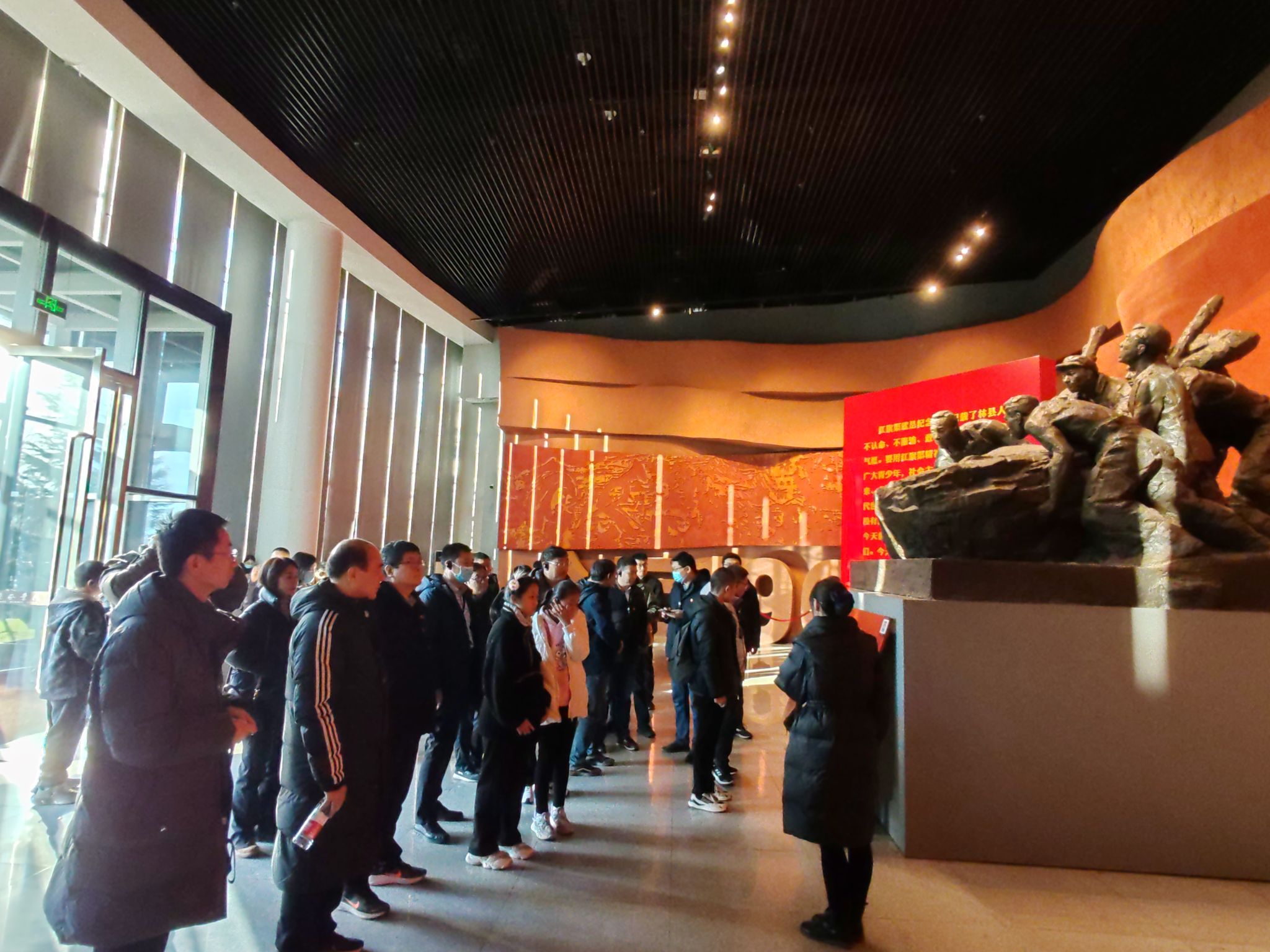 12月2日下午,全体党员同志来到红旗渠纪念馆,在讲解员的带领下,大家先后参观了“旱魔”“奇迹”“丰碑”“梦想”“精神”等展区,一副副珍贵的历史照片,一件件铁锤、铁钳等修渠物件,一个个生动感人的奋斗故事,再现了那段“大山如碑,长渠如歌”的历史。20世纪60年代,林县人民为了改变干旱缺水的困境,从山西引漳河水入林县,参与修建人数近10万人,耗时10年,红旗渠工程全长近1500公里,削平了1250座山头,开凿了211个隧洞,修建过程中先后有81位党员干部和群众献出自己宝贵的生命,年纪最大的63岁,年纪最小的仅有17岁。党员们全面了解了林州人民在中国共产党的领导下“劈开太行引漳河,誓把河山重安排”的修渠全过程,无不被“自力更生、艰苦创业、团结协作、无私奉献”的红旗渠精神所震撼。随后,党员们参观了红旗渠分水枢纽工程分水闸,也是当年红旗渠总干渠通水典礼所在地,58年前,林州人民在这里欢庆渠成,58年后的今天,精神之河依旧奔流不息。