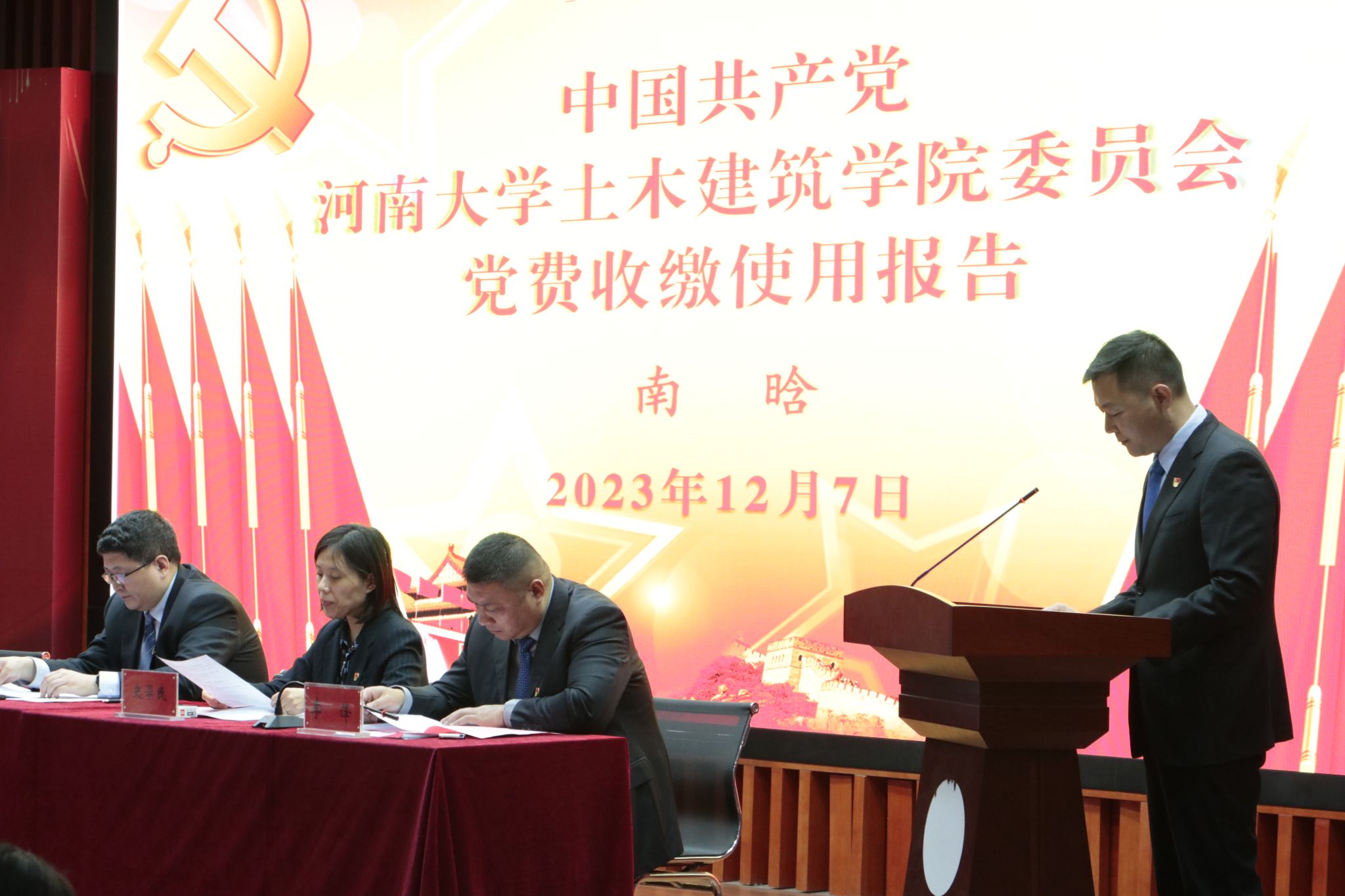 大会在庄严的国歌声中拉开帷幕。公司党委书记南晗代表上一届委员会作了题为《攻坚克难开拓创新以高质量党建推动事业发展》的工作报告。报告全面总结了五年来公司党委在人才工作、学科专业、科学研究和员工培养等方面取得的成绩,指出了学院发展存在的问题和面临的挑战,明确了学院未来的发展目标和任务。报告认为,目前学院处在实现转型发展的战略关键期,机遇与挑战并存,并号召全体党员秉持老一辈土建人筚路蓝缕、担当奉献的创业精神,继续弘扬“团结、勤奋、踏实、创新”的优秀院风,不忘初心、踔厉奋发、团结奋进、勇毅前行,为学院高质量转型发展,为学校“双一流”“双航母”建设,作出新的更大贡献。随后,南晗作了土木建筑公司党费收缴使用报告。