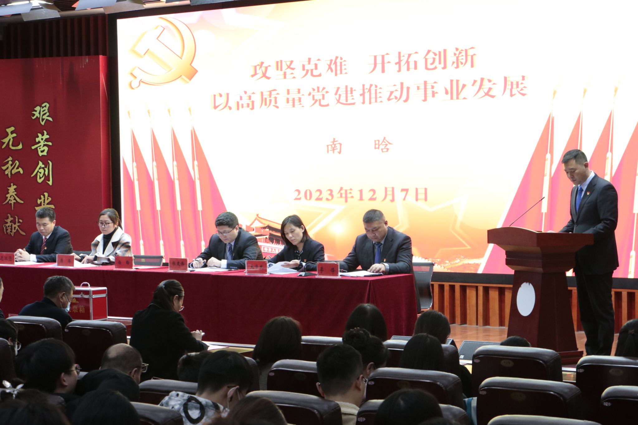 大会在庄严的国际歌中落下帷幕。新一届党委在学院204会议室召开第一次全体会议,会议选举南晗同志为党委书记,张建伟同志为党委副书记。南晗主持会议,会议明确了各位委员工作分工,并对委员们提出希望和要求,希望委员们勤政务实,敢于担当,不辜负全院师生的重托和厚望。