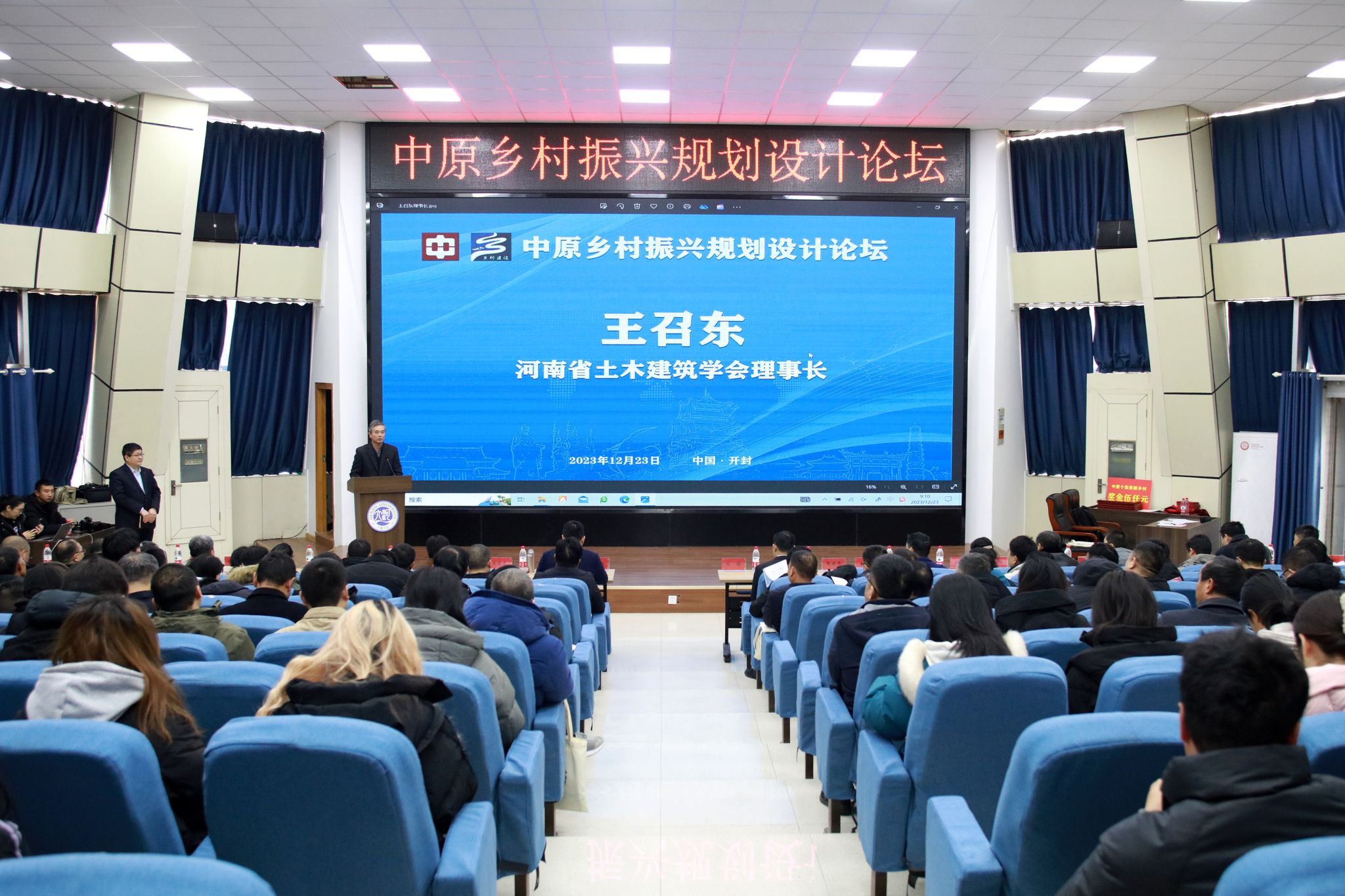 为贯彻落实《中共中央国务院关于做好2023年全面推进乡村振兴重点工作的意见》,为美丽乡村规划和建设提供新思路、新智慧、新能量。由河南日报社、河南省工业和信息化厅、河南省住房和城乡建设厅、河南省农业农村厅、河南省土木建筑学会主办,必赢242net承办的“中原乡村振兴规划设计论坛”于12月23日在必赢242net举行,论坛以“人文情怀下的乡村建设实践与思考”为主题。