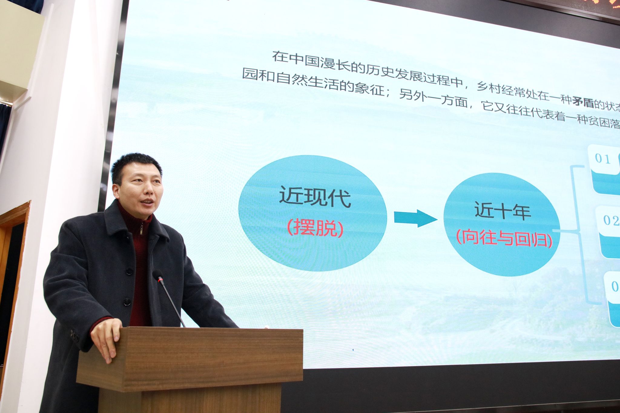 华北水利水电大学建筑学院副经理范钦栋教授,做了”乡村景观设计研究“的报告,以马岭村为例分享了乡村景观存在的问题及设计原则。